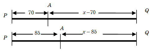 Example 4:\(A, B\) start moving from a point P towards \(Q\). Ratio of the speed of \(A\) & \(B\) is 7:3 \(A\) after reaching \(Q\), returns towards \(P\). Find the point where they meet. Given that \(PQ = 200\) m.