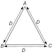 If \({T_{AB}} = \) Time taken by the person to travel from \(A\) to \(B\), \({T_{BC}} = \) Time taken by the persons to travel from \(B\) to \(C\) and \({T_{CA}} = \) Time taken by the persons to travel from \(C\) to \(A\).