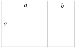 This diagram shows a golden rectangle. The rectangle is divided into a square and a smaller rectangle. In a golden rectangle, the smaller rectangle is the same shape as the larger rectangle, in other words, their sides are proportional. In further words, the two rectangles are similar. This can be used as the definition of a golden rectangle. The proportions give us: