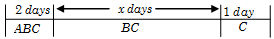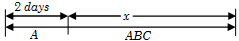 We see that \(C\) has worked for \((x + 3)\) days, \(A\) has worked for 2 days and \(B\) has worked for \((x + 2)\) days.