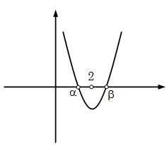 Suppose the roots are \(\alpha \,\,and\,\,\beta \), since one root is more than 2 and one root is less than 2, hence the graph will be negative at \(x = 2\) and roots are real (as imaginary numbers are not comparable) so \({b^2}-{\rm{ }}4ac > {\rm{ }}0\) and \(f(2) < 0\)