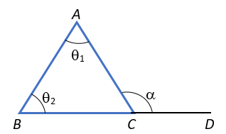 Again extending any of the side, we get external angle. Suppose the line BC is extended to D. Let \(\angle \)ACD = \(\alpha \)