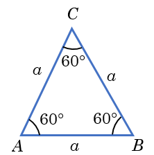 If all the three sides (or three angles of a triangle) are same, then the triangle is known as equilateral triangle. In equilateral triangle each angle is equal to 60°. Suppose side of the equilateral triangle is \(a\), then