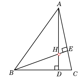 In an acute-angled triangle, it lies inside the triangle. In a right-angled triangle, it lies at the vertex, in an obtuse angled triangle it lies outside the triangle. In the given triangle, \(H\) is the orthocentre of the triangle.