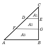 Solution: Triangles \(CDE, CFG\) and \(CAB\) are similar, where, \(CD:CF:CA =1:2:3\)