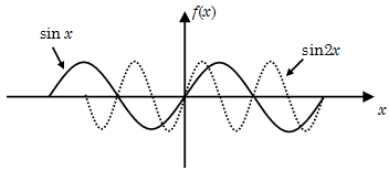 Solution: The period of sin x will be \(360°\) and period of \(sin2x\) is \(180°\).