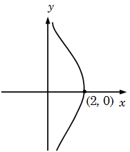 The graph is symmetrical about x axis. Now \(x\) can not be negative or more than 2 as \({y^2}\) becomes negative and \(y\) becomes imaginary. When \(x\) is tending to 0, \(y\) is tending to infinite.