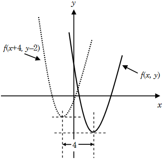 Solution: The function \(f(x, y)\) means \(y = f(x)\) and the function \(f(x + 4, y)\) means \(y = f(x + 4)\). Suppose in the function \(f(x, y)\) at \(x = {\rm{ }}0,y = {y_1}\), now in the second function \(f(x + 4, y)\), at \(x = -4\), the same value of \(y\) can be obtained. If the graph for \(f(x, y)\) is given, then the graph for \(f(x + 4y)\) can be obtained by shifting the graph 4 unit towards left. Similarly graph of \(f(x + 4, y - 2)\) can be obtained by shifting the graph \(f(x + 4, y)\) 2 units vertically upwards.