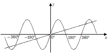 Example 18: Find the number of solutions of the equation \(\sin x = \frac{x}{{10}}\).