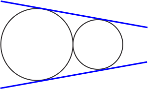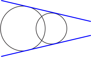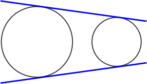 When one circle is not contained by the other circle, there are two direct common tangents to the two circles.
