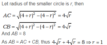 Question 07: Two circles, each of radius 4 cm, touch externally. Each of these two circles is touched externally by a third circle. If these three circles have a common tangent, then the radius of the third circle, in cm, is