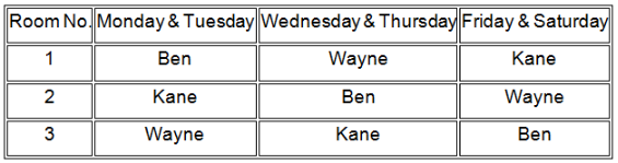 The clinic has three rooms numbered 1, 2 and 3 which are assigned to the three doctors as per the following table.