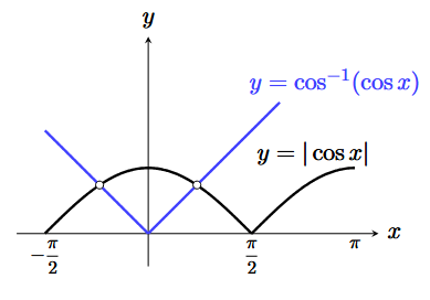 Hence \(|\cos x| = \cos^{-1}(\cos x)\)