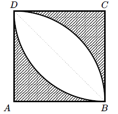 Common area = Area of 2 quadrants - Area of square = \(128\pi - 256\)