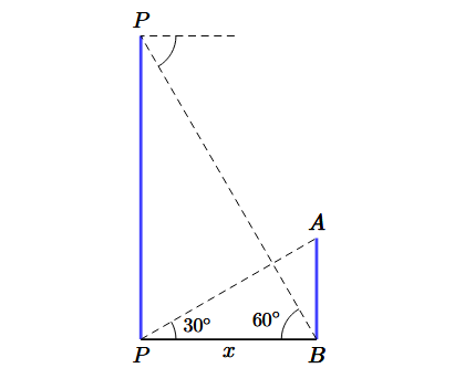 At \(Q\), the angle of depression of the foot \(B\) is \(60^\circ\). Hence \(\angle QBP = 60^\circ\).
