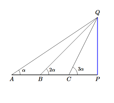 \(\tan 45^\circ = \dfrac{h}{x}\)