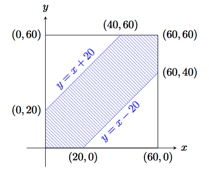 Sample space: square \([0,60] \times [0,60]\) with area \(= 3600\)